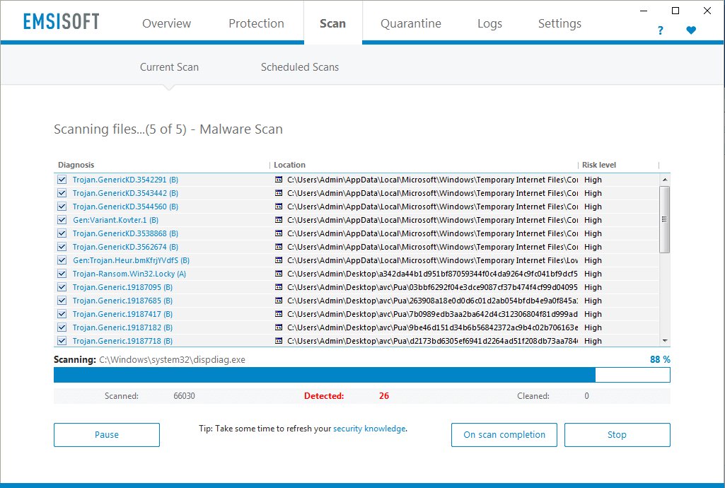 19-من مميزات برنامج Emsisoft انه يقوم بفحص الذاكرة و الريجستري وملفات بدء التشغيل ومجلد البرامج والتأكد من سلامة ملفات النظام