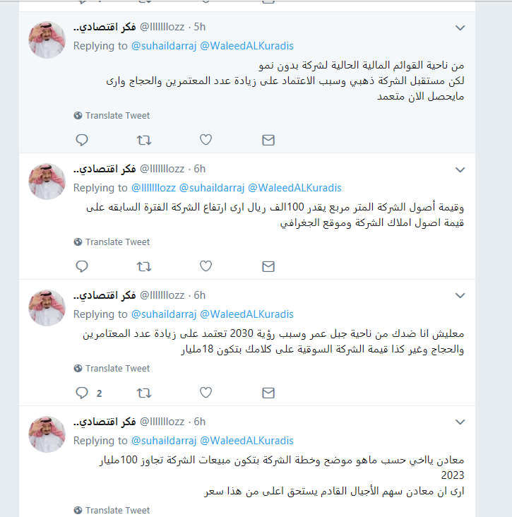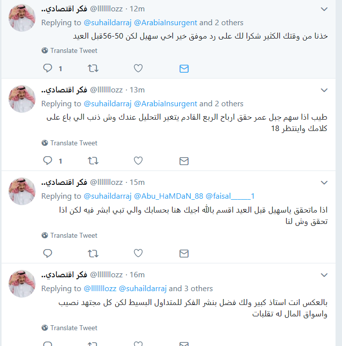 @alkhudairi_ali @BadrAlmare وانما توقفت بسبب الاساءات والسب واللعن الذى يأتى من عديمي التربية ، ومن جهة اخرى لأنى اقتنعت أن المادة التى تقدم بالمجان وعى صفحات تويتر لا تُحترم ، وان من يريد ان يعمل في سوق الاسهم عليه أن يحصل على دورة التحليل المالي ليستطيع اتخاذ قراره بنفسه ، ليس بمساعدة سهيل أو غيره ..